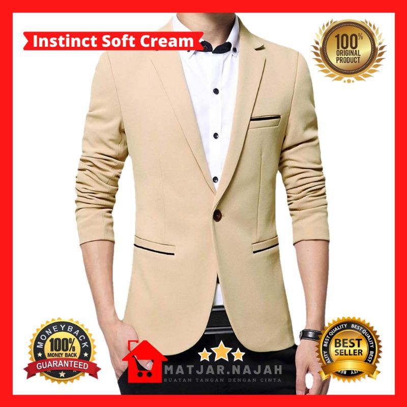 Jas Pria Instinct Soft Cream Matjar Najah Blazer Pria Krem Muda