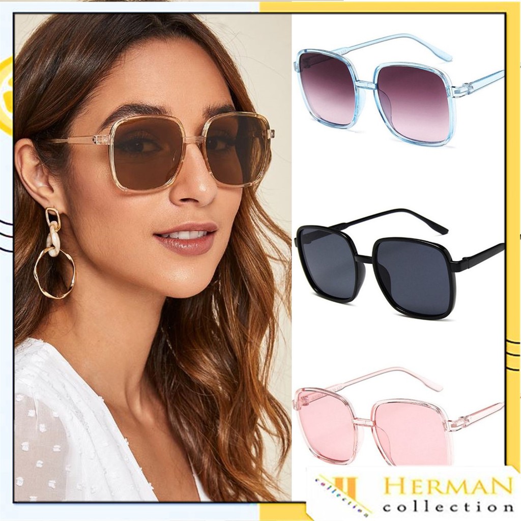 Kacamata Hitam Oversize Frame Kotak Transparan Gradasi untuk Wanita